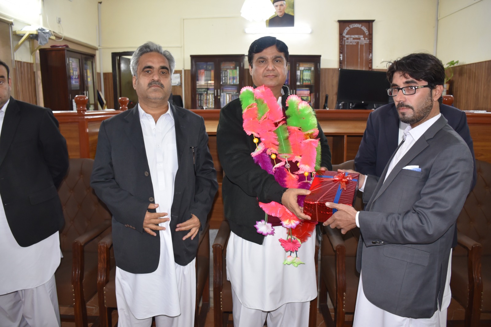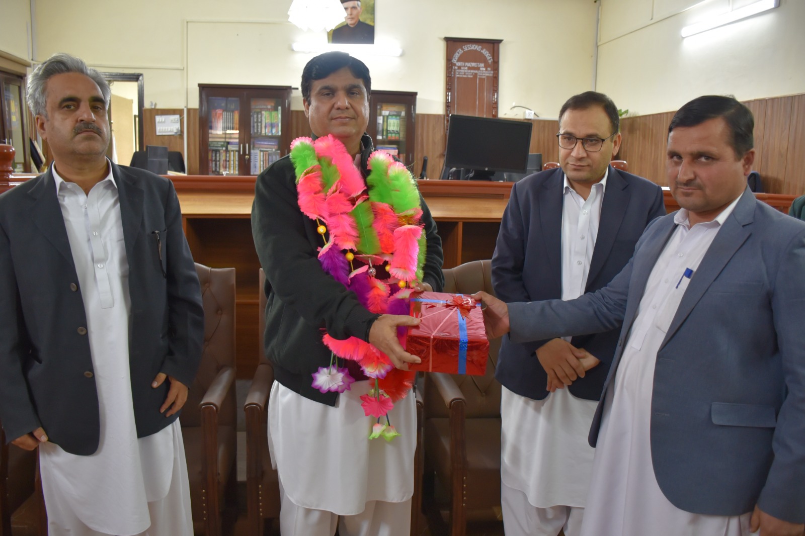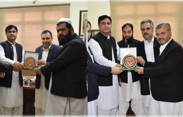 A farewell shield and gift have been presented to Mr. Bakht Alam, Additional District & Sessions Judge-III, Bannu and Mr. Sher Hassan Khan, Civil Judge/JM-II North Waziristan by the Hon’ble District & Sessions Judge, North Waziristan at Bannu upon their transfer